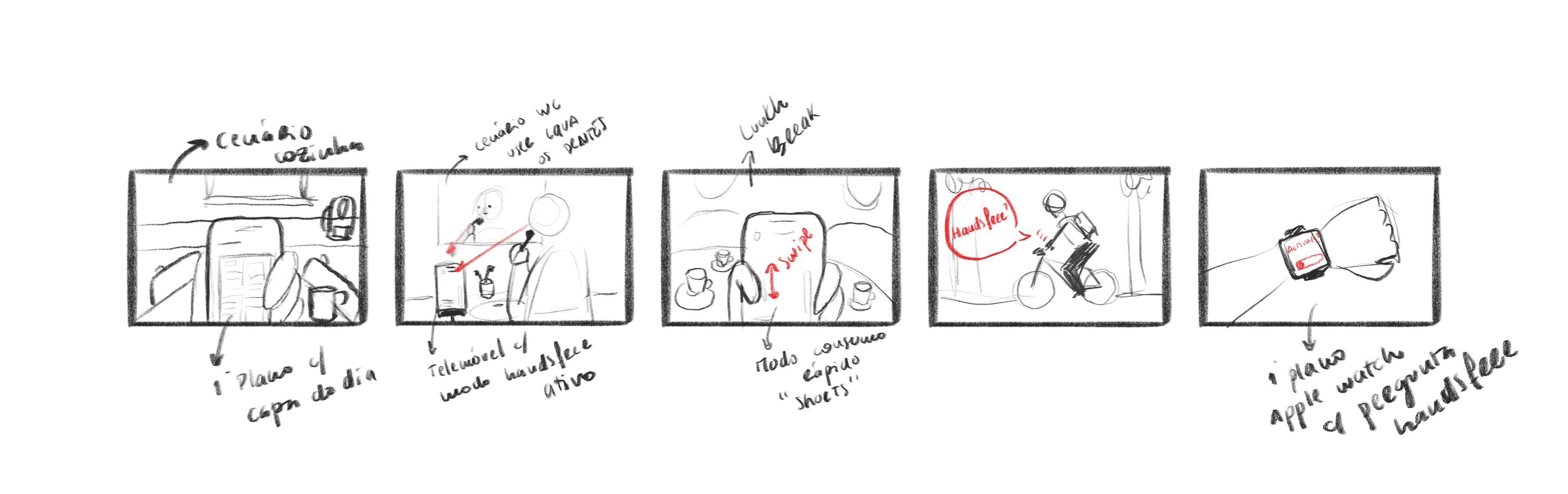 From this research, we identified recurring behavioral patterns: short-form content, audio first interactions, personalization, and hands-free usage. To ground these insights, we defined a clear persona, the User on the Go, and structured the proposal around moments in a typical day.